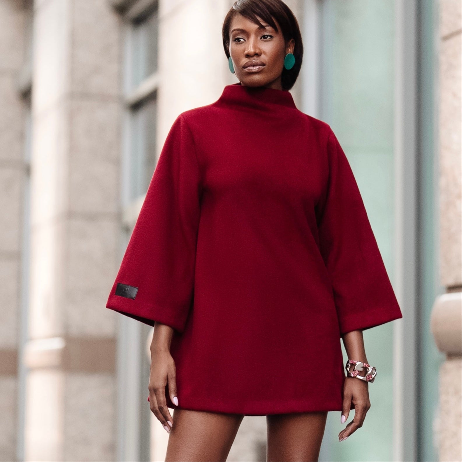 The Brera dress is a stunner! Italian craftmanship delivers the perfect, tailored, A line silhouette. With long sleeves and a brushed cozy surface, the Brera proves you can be incredibly gorgeous while delivering high performance thermal insulation. Available in a vibrant pink or indulgent burgundy. Style this unique mini dress with boots for the ultimate statement. Perfect for casual, work or evening wear.