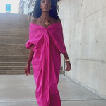 The Boubou maxi dress is everything! A beautiful silhouette, stunning colors, and effortless fit. Our bold minimalist reimagining of the iconic boubou style is one you’re going to reach for over and over again! Style off the shoulder for the perfect statement that travels seamlessly from day to night. Perfect for work, evening, or vacation / resort wear.